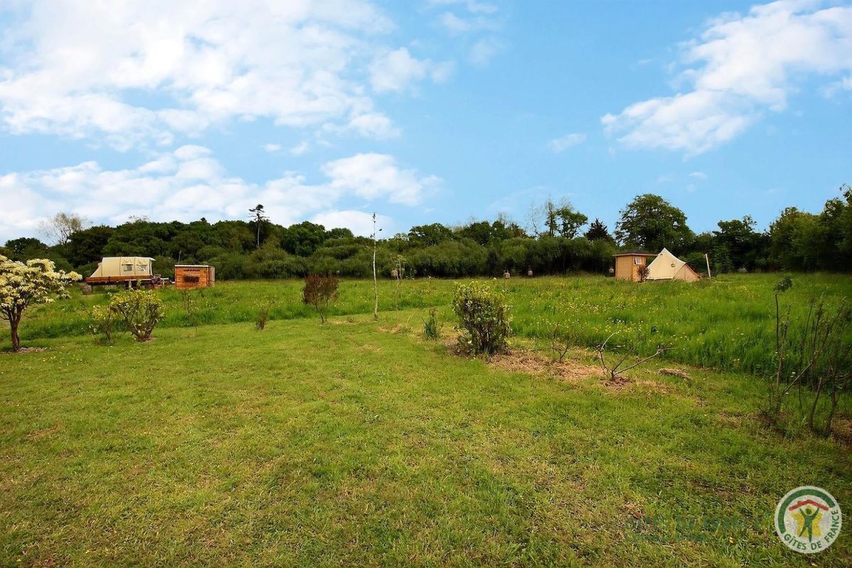 Vaste tente en coton en forme de tipi accueillant la chambre avec son lit 2 personnes en 160X200 et coin salon + mini-cuisine. Juste à côté : cabanon bois renfermant la salle d'eau privative avec douche d'angle, vasque et toilettes sèches. Terrasse bois de 5m² avec salon de jardin.