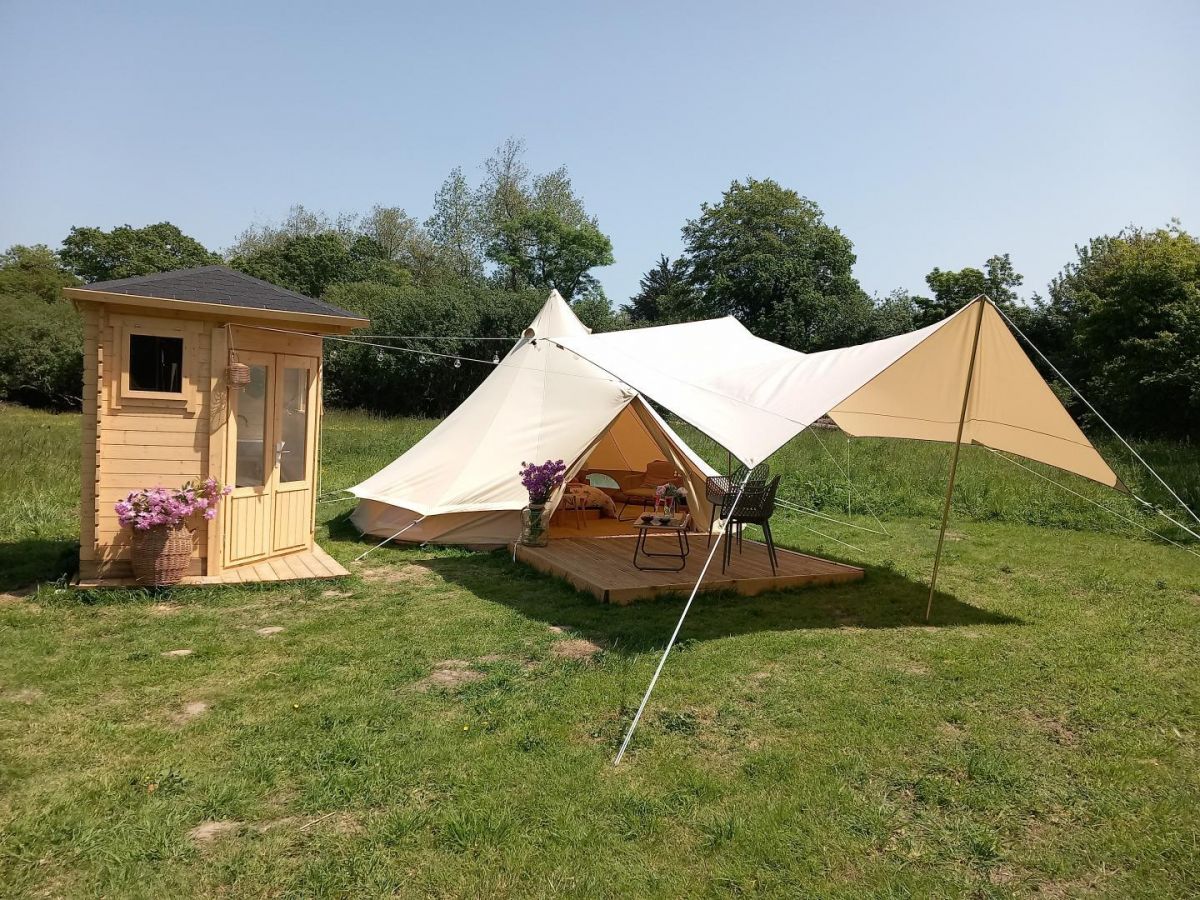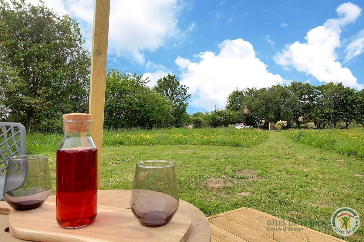 Vaste tente en coton en forme de tipi accueillant la chambre avec son lit 2 personnes en 160X200 et coin salon + mini-cuisine. Juste à côté : cabanon bois renfermant la salle d'eau privative avec douche d'angle, vasque et toilettes sèches. Terrasse bois de 5m² avec salon de jardin.